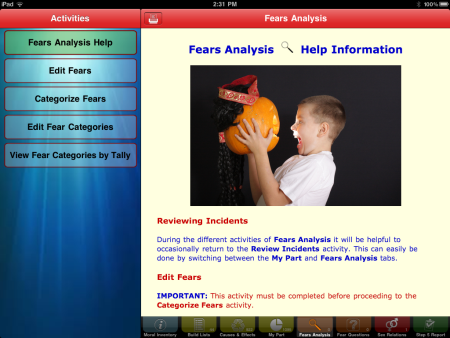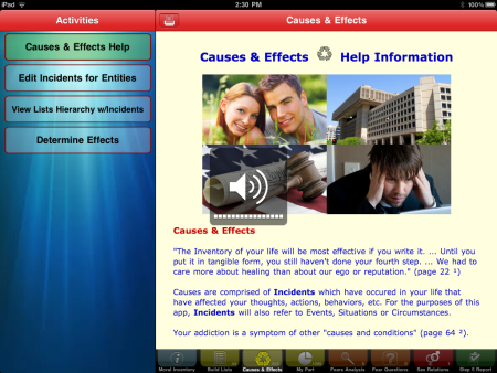 Disclaimer — This app is neither officially produced nor approved by Alcoholics Anonymous or any other Addiction Recovery program. From what is known there have been many Moral Inventory spreadsheets circulating unofficially among AA members for at least 50 years in various versions and this app is based on one the developer found to be useful and more comprehensive than most.