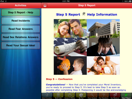 The Step 4 Moral Inventory app was created because of the complexity and length of time needed to do a proper Moral Inventory. When persons working their way through a 12-step program start creating their own moral inventory and discover that some ways of doing a Moral Inventory might require a thousand spreadsheets, the task seems daunting and many never get around to finishing it, thus depriving themselves of the rewards a Moral Inventory can provide. This app is a first attempt at finding a way to make the task less time consuming, while at the same time helping the user create a valuable asset in their recovery process.